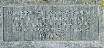 The inscription reads: Mustered in at Detroit, Mich. May 1, 1861 for 3 months. Total enrollment 2144 officers and men. "From the first to the last." This monumet marks the position
